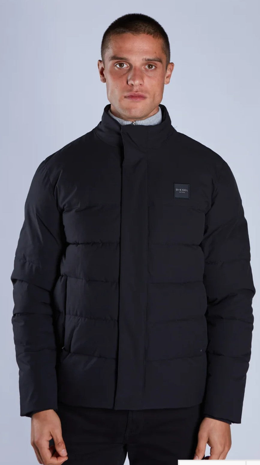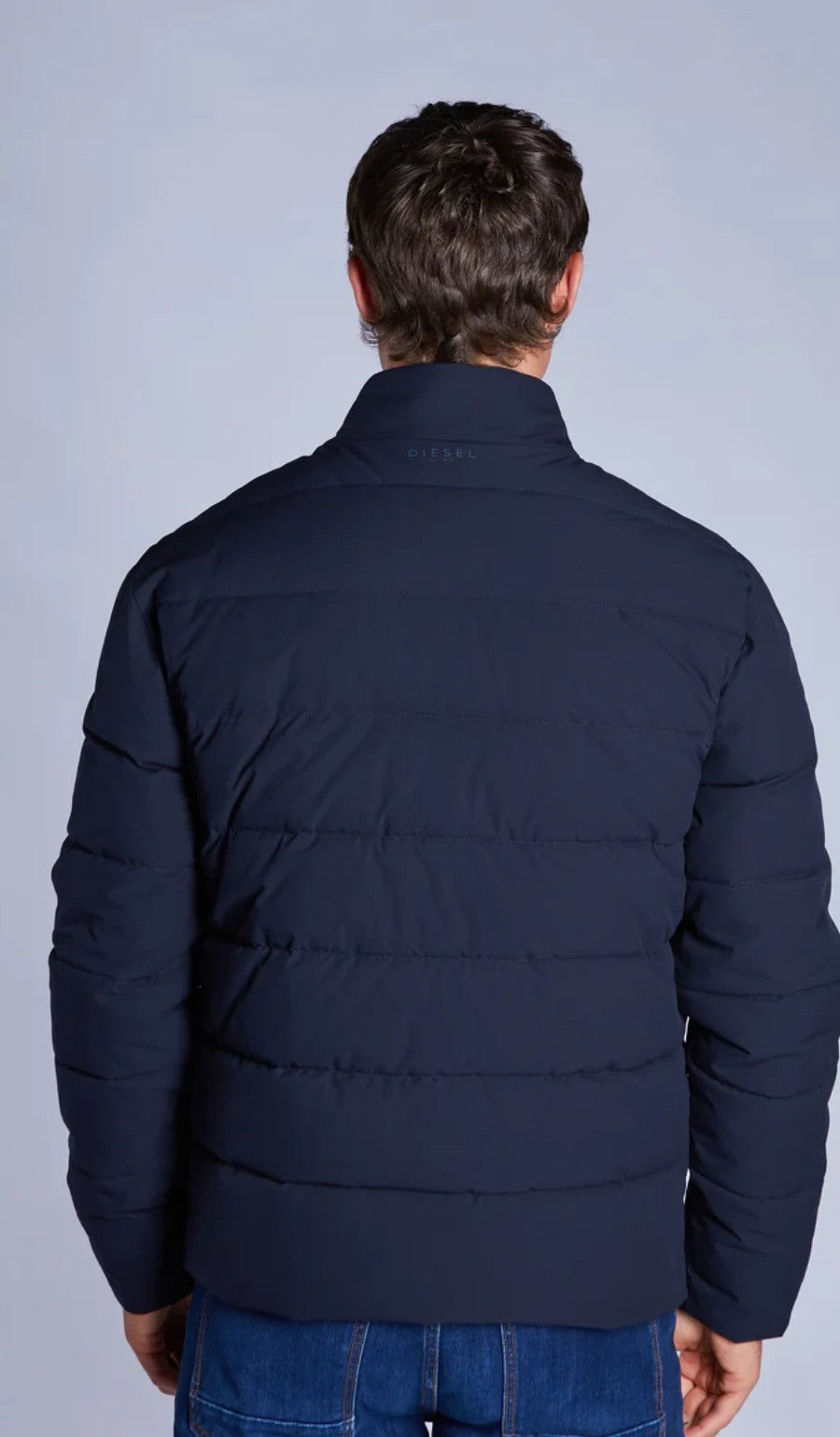 This mid-weight jacket is a must have for a smarter look this Autumn/Winter season. Crafted with a matte polyester shell and recycled polyester filling. Featuring a concealed zip closure to the front, zipped front pockets, one interior pocket, a stand collar with an internal rib detail and ribbed concealed cuffs.   It has our premium Diesel embroidered badge on chest.